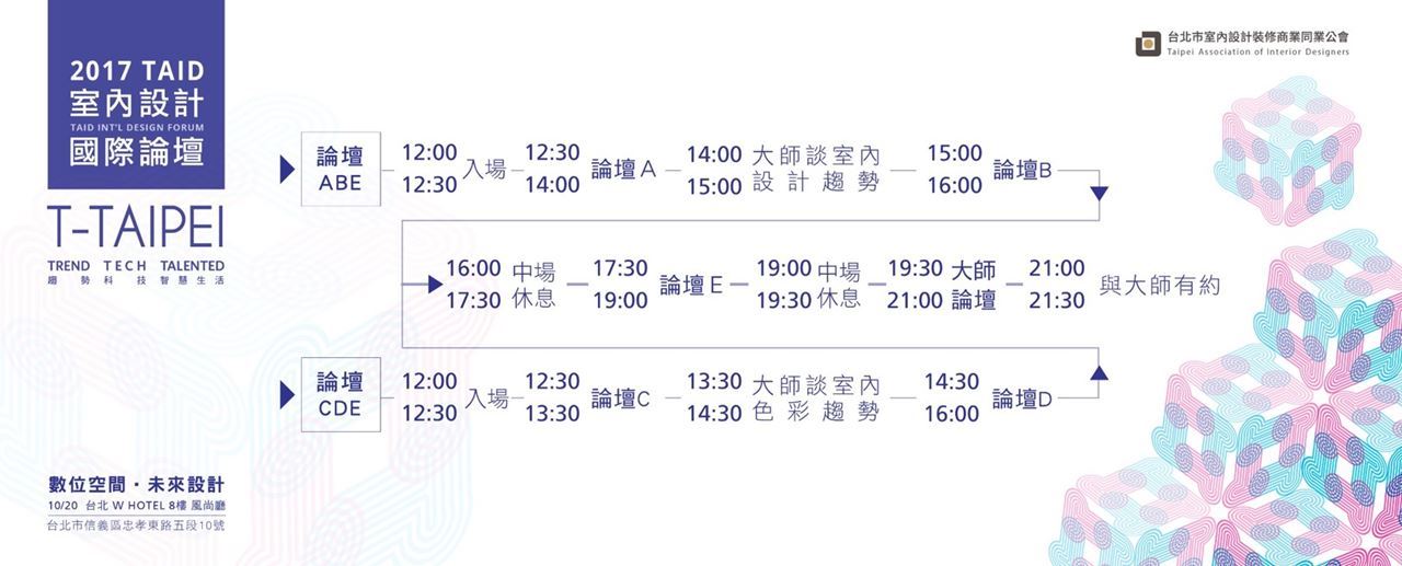 2017室內設計國際論壇活動時間:2017/10/20 12:00-21:40