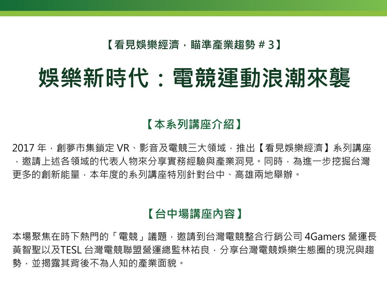 【看見娛樂經濟】系列講座 # 3(台中場)