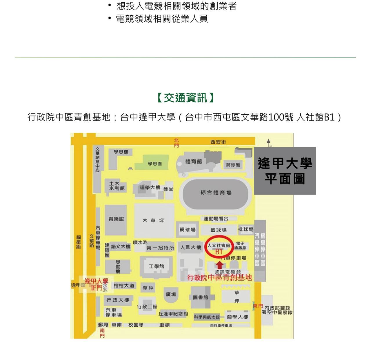 行政院中區青創基地 : 台中逢甲大學,人社館B1