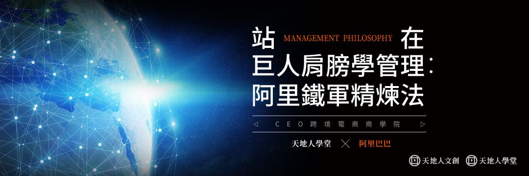 名稱:天地人學堂 X 阿里巴巴|站在巨人肩膀學管理:阿里鐵軍精煉法(CEO跨境電商商學院 系列培訓課程)
