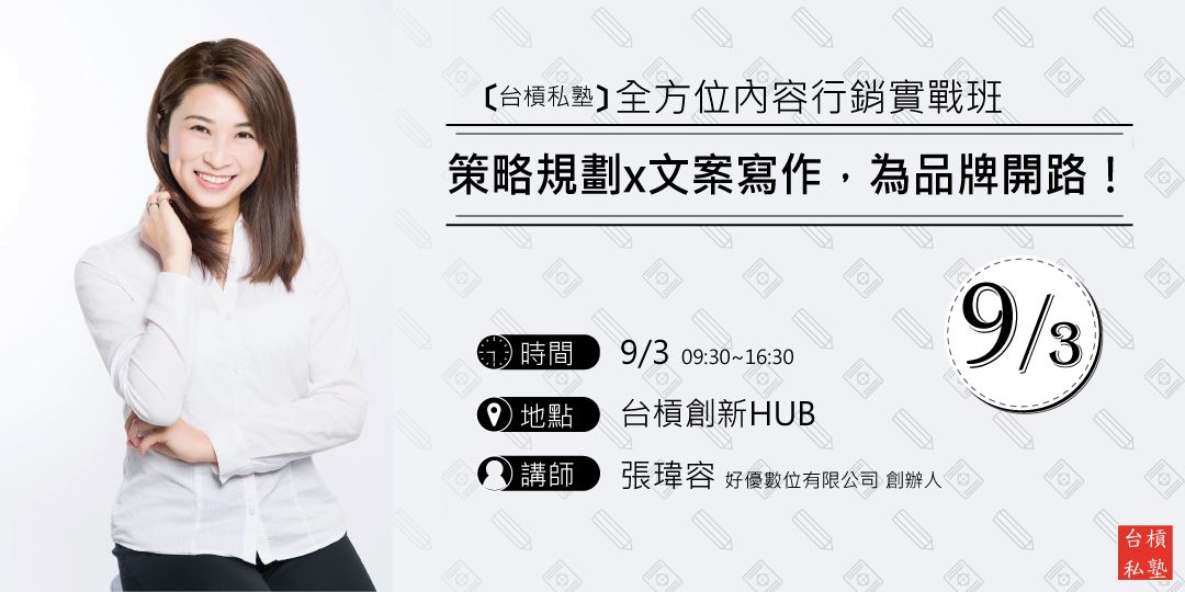 9/3(日)【台槓私塾】策略規劃╳文案寫作,為品牌開路!全方位內容行銷實戰班