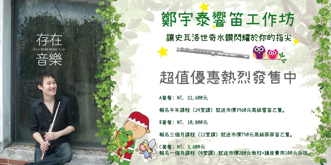 報名三個月課程(12堂課)就送市價750元高級菲菲笛乙隻。