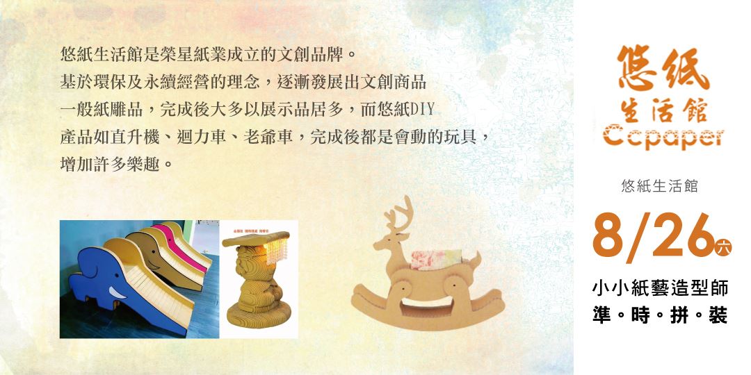 第三場:8/26 (六) 悠紙生活館-『小小紙藝家』(造型麋鹿紙公仔 DIY)