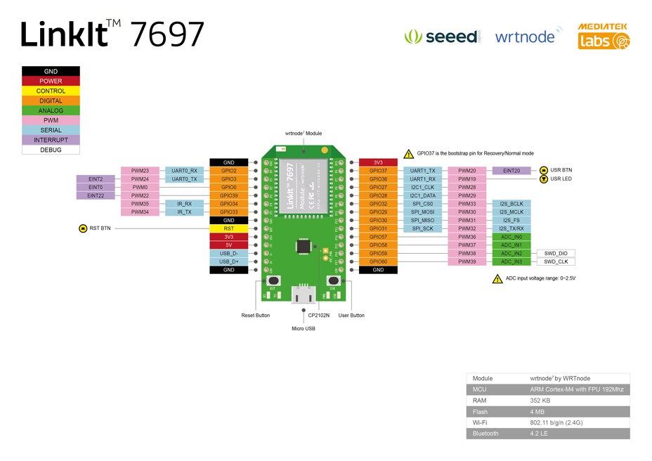 LinkIt 7697為MTK針對物聯網應用所推出的開發板,主要特色為同時支援WiFi加BLE,能滿足物聯網通訊上的需求。同時,它也訴求「平價」與「廣泛軟體開發支援」,支援的開發環境包括Google的Blockly方塊開發程式語言(MTK稱為BlocklyDuino)、JavaScript語言、Arduino相容開發及C語言開發等。