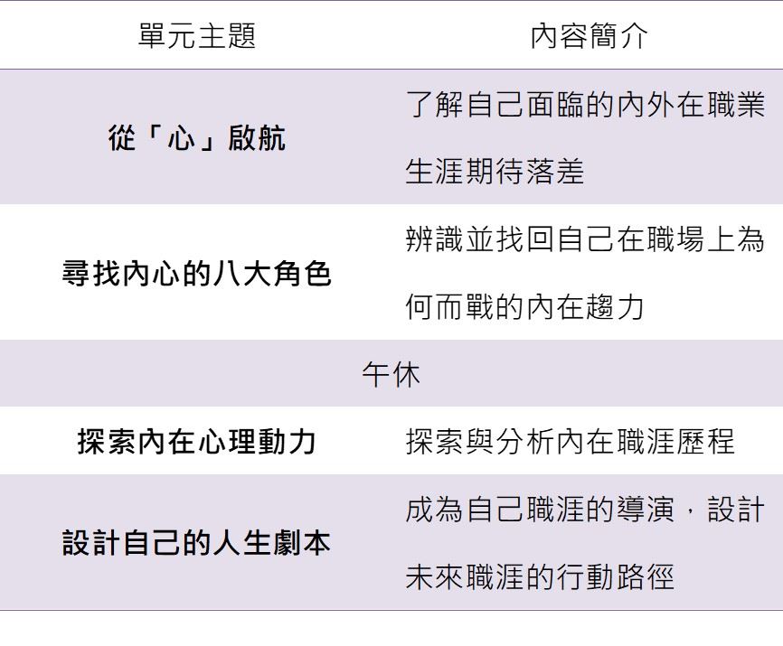 課程費用:費用含課程、講義、職涯錨定量表(量表定價NT$ 2,000元)