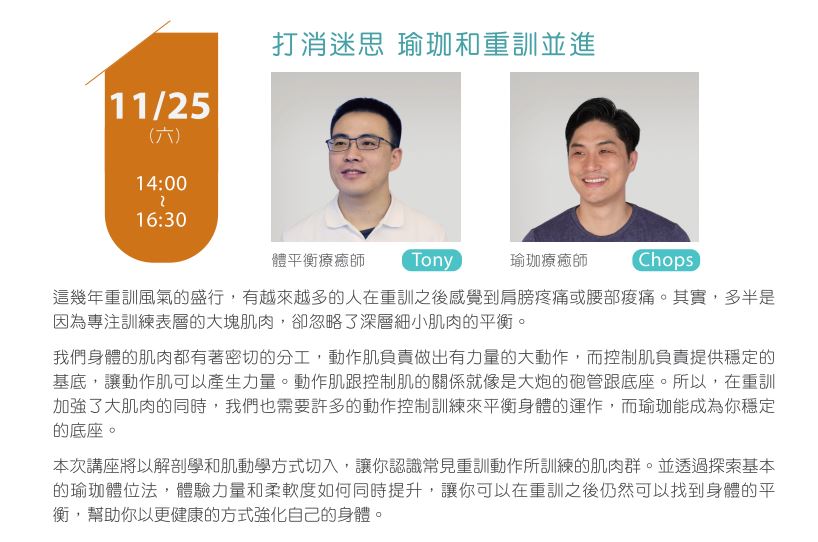 **體驗講座將搭配瑜珈練習,請穿著適合練習之服裝。