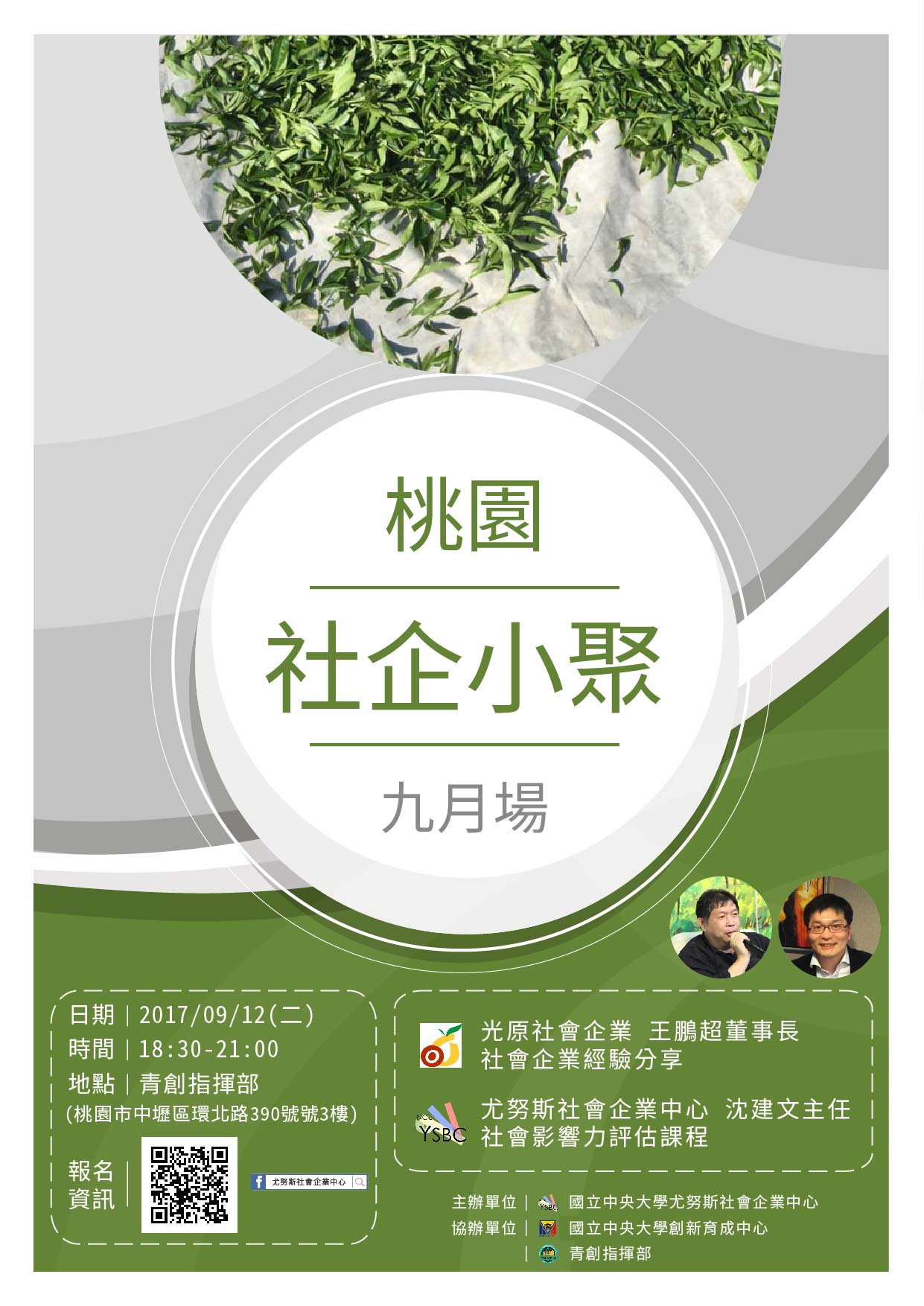 為凝聚桃園市對社會企業有興趣之青年或組織,國立中央大學尤努斯社會企業中心舉辦「桃園社企小聚」,希望透過彼此分享與交流的方式,除了可獲得專家的建議外,亦可尋找資源、網絡與夥伴,共同為桃園市社會企業的發展貢獻心力。