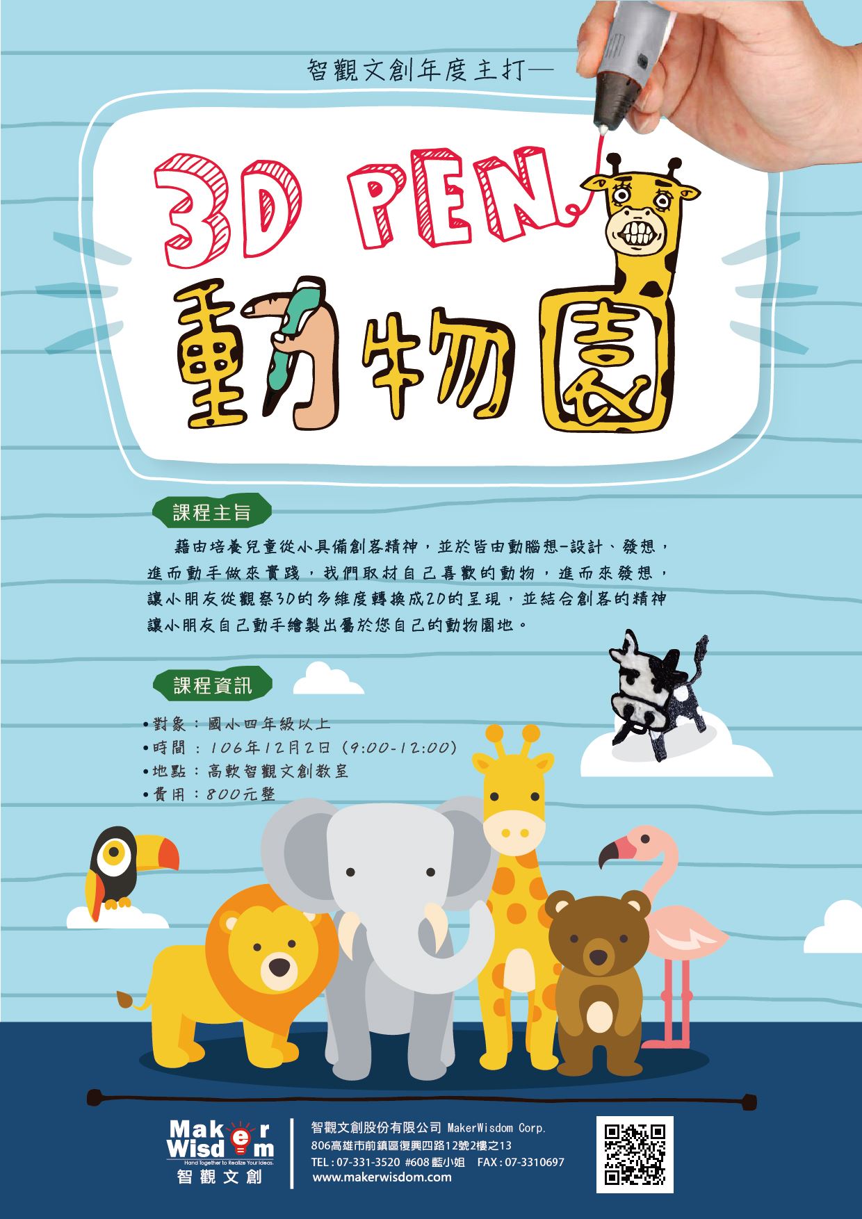 藉由培養兒童從小具備創客精神,並於皆由動腦想-設計、發想,進而動手做來實踐,我們取材自己喜歡的動物,進而來發想,從觀察3D的多維度轉換成2D的呈現,並結合創客的精神,並動手繪製出屬於您自己的動物園地。