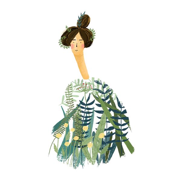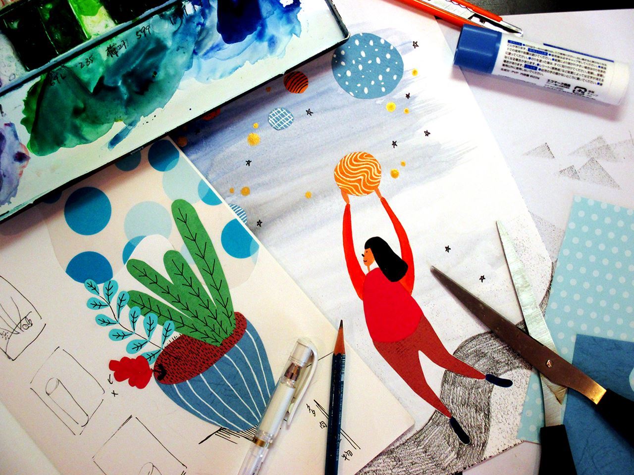 擅長運用水彩與鉛筆,創造色彩豐富的畫面,也喜歡混合不同的媒材在作品中。畫圖時主要的靈感來自於周遭的人物,和自然中有機的花草圖案。