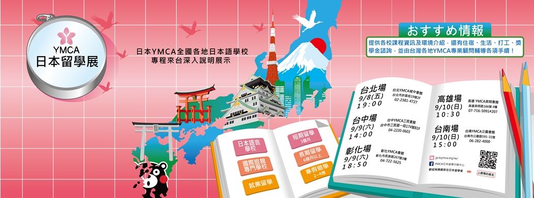 日本全國YMCA日本語學校專人來台提供第一手豐富的在地生活情報與課程資訊!