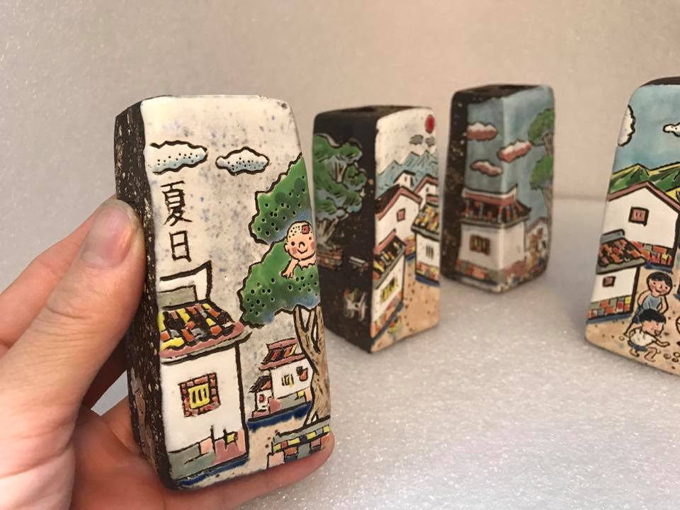 1.第一次作品賞析與分享2.講解如何強化商品的獨特性3.製作屬於自己的獨特文創商品(碟子.小盤.煙灰缸共三個.品牌公仔一到兩個.筷架與小飾品各五到十個)