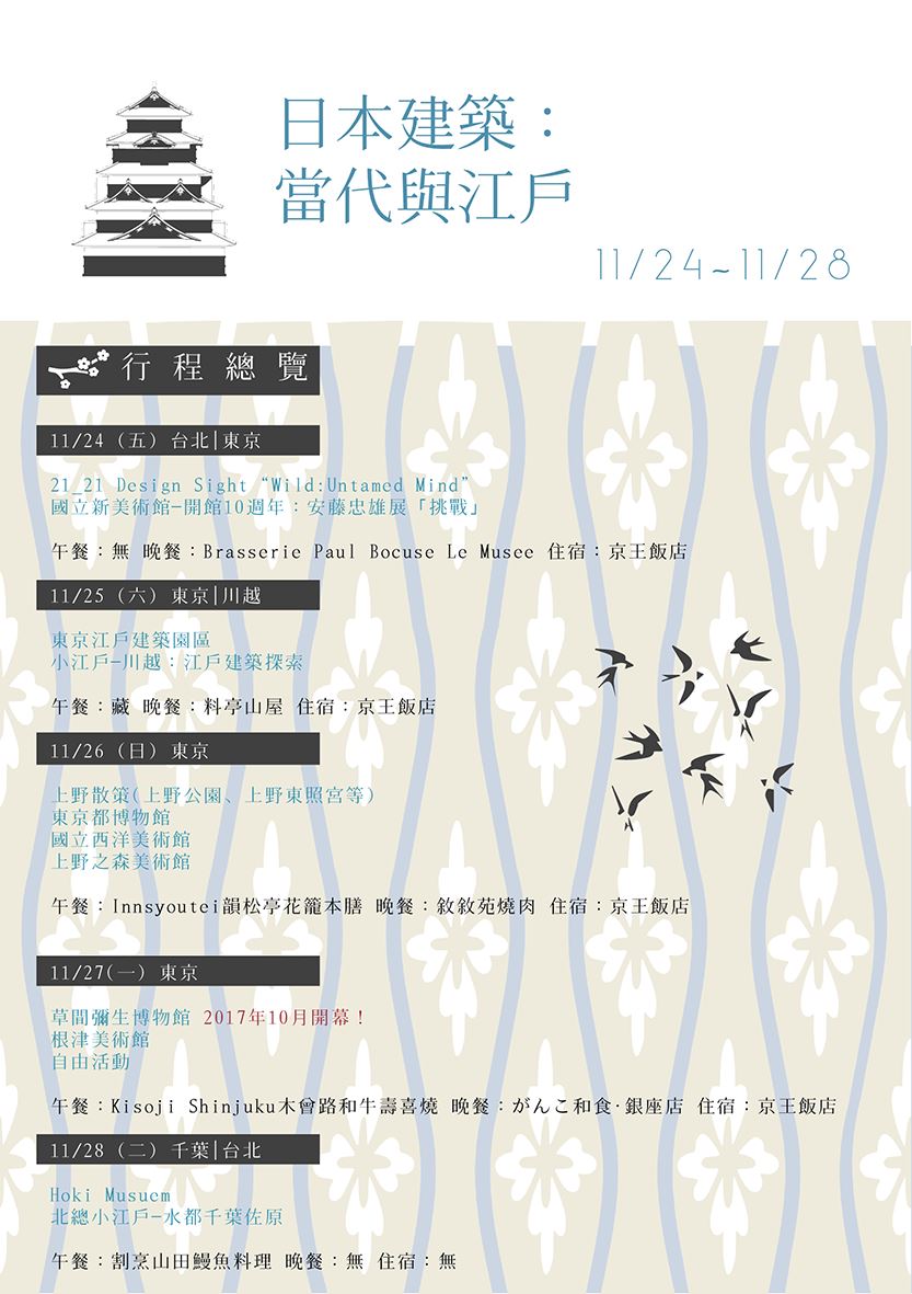 本次行程以當代(東京)和傳統江戶建築(川越與千葉佐原)為主軸,跟隨專業講師實際走覽建築現場,感受日本設計魅力!