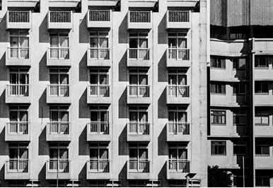 建築,指的是那些為人類活動提供空間的,又或者說是擁有內部空間的構造物進行規劃與設計。建築的曲線、符號、圖形、光影為這次題材的拍攝概念。以黑白底片去呈現建築物的局部長相,抽離了色彩,保留建築物原先的線條,以光影,換一種角度重新觀看與建築物樣貌與價值。 |