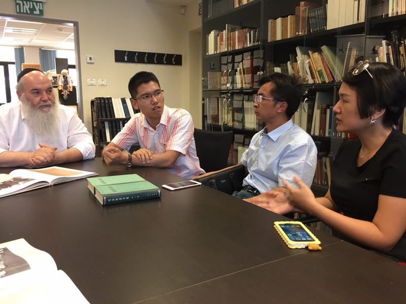 抵達以色列的第一天,走進以色列規模最大的學府——特拉維夫大學,聆聽兩位知名學者分享猶太人的文化基因。Jeremy Fogel(左)是特拉維夫大學猶太研究學院博士,猶太哲學和猶太教育學專家,曾在各國遊學多年,主要專注猶太宗教哲學研究。朱兆一(右),曾留學埃及開羅大學、特拉維夫大學,經濟學博士,專注於以色列經濟、猶太歷史、大中東研究。2012年發起成立中國猶太經濟與文化研究中心,對以色列的文化歷史經濟都有深刻研究。