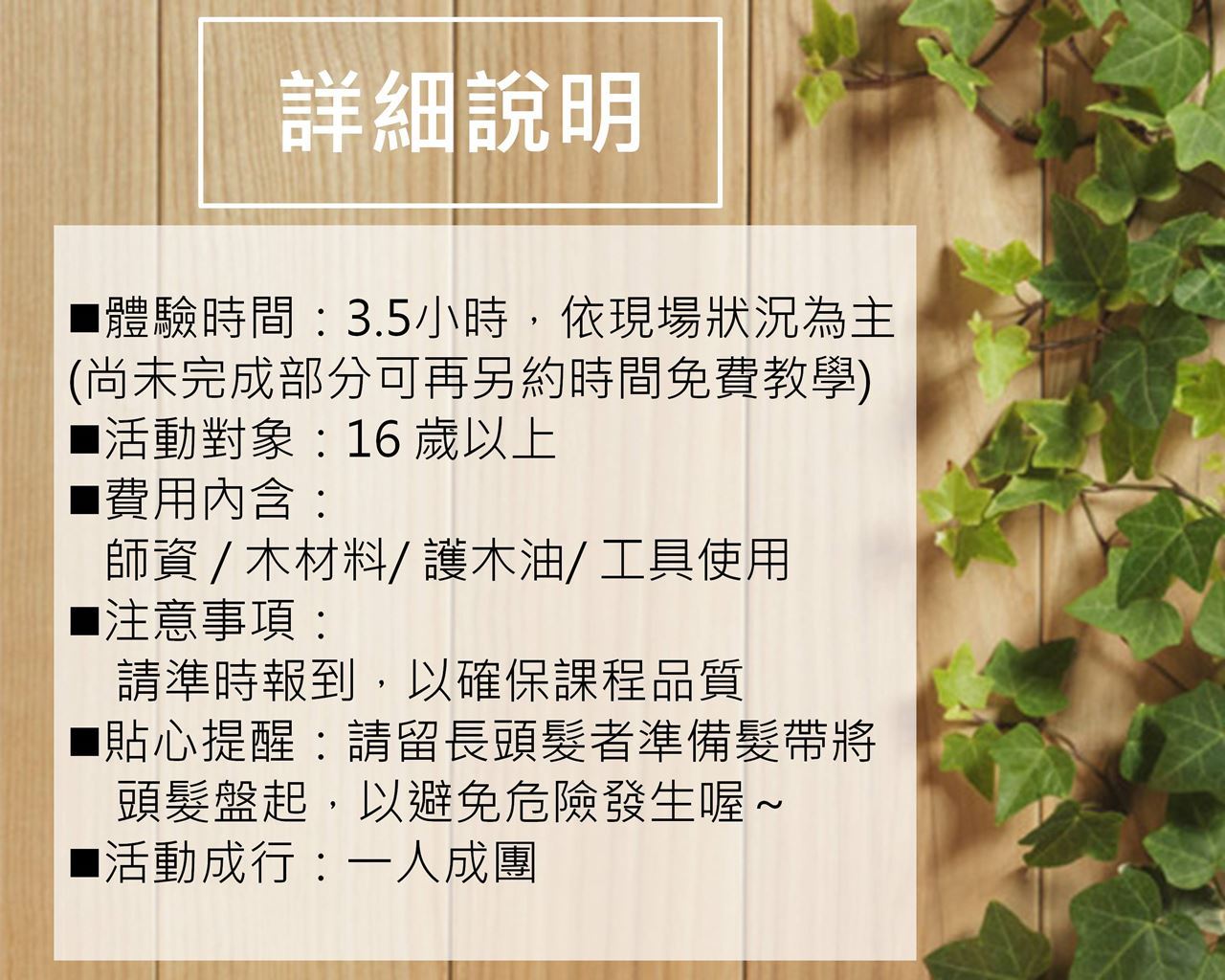 ※本活動 恕不退費,若有其他上課時間需求歡迎您預約專人教學(收費會有些許調整),歡迎電洽詢問。