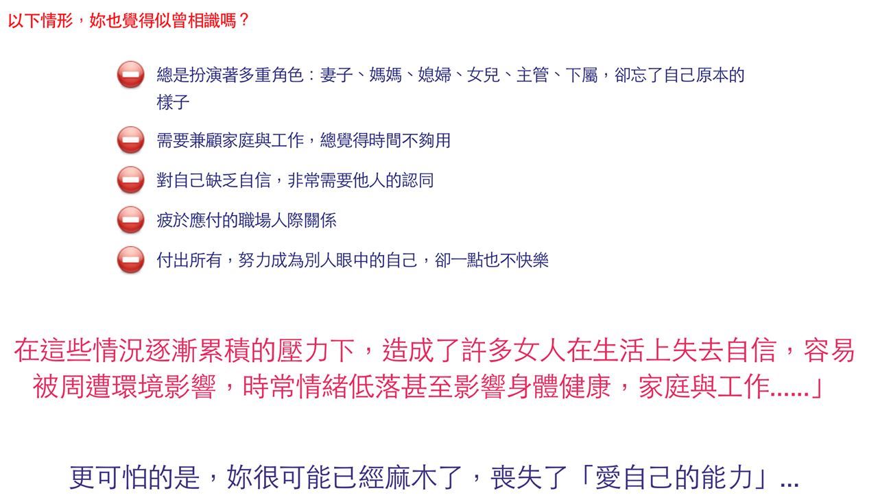 - 懂得了解自已、如何愛自己,找到自己內在的勇氣,讓自己更美麗。