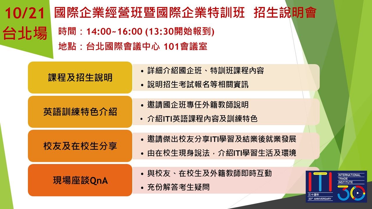 國際企業人才培訓中心-107年度招生說明會-10/21台北場