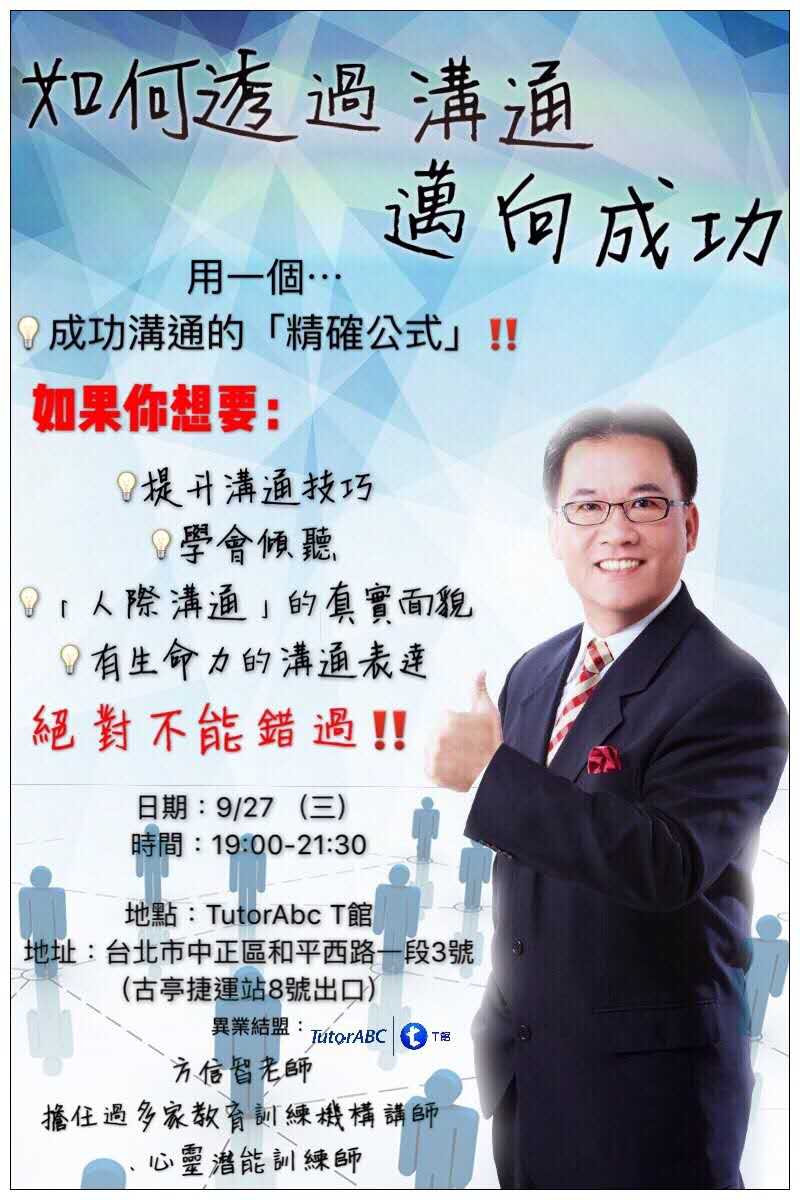 就讓我們一起瞭解如何透過溝通邁向成功 ! 絕對不能錯過的分享會 !