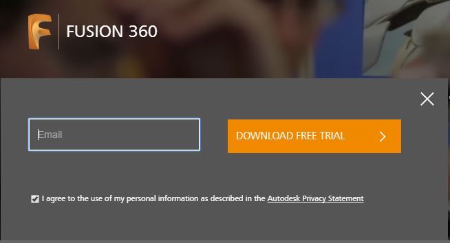 (2) 課程前兩天至Fusion360官網,輸入E-mail即能Download FREE Trial免費30天試用版。請完成創建帳戶與安裝流程(僅需5分鐘)。