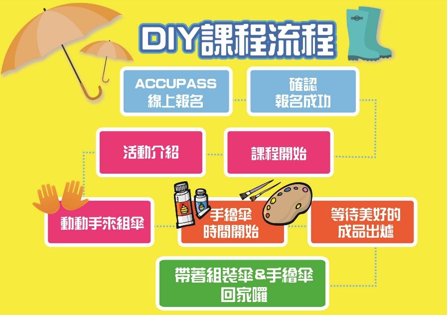 1.一張票內含兩把傘(一把組裝傘+一把20吋兒童直傘),一張票券參與活動人數限制2~3人。