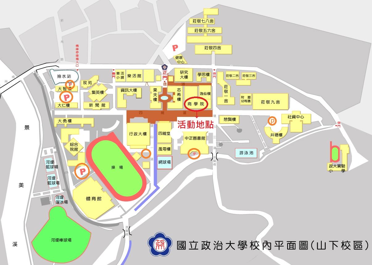 4. 其他停車地點:綜合院館、新聞館、體育館等,詳情請參閱政大山下校區平面圖。