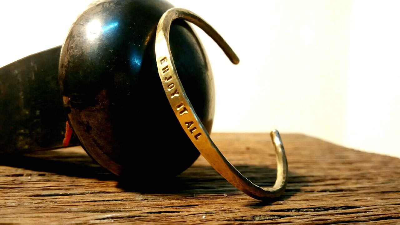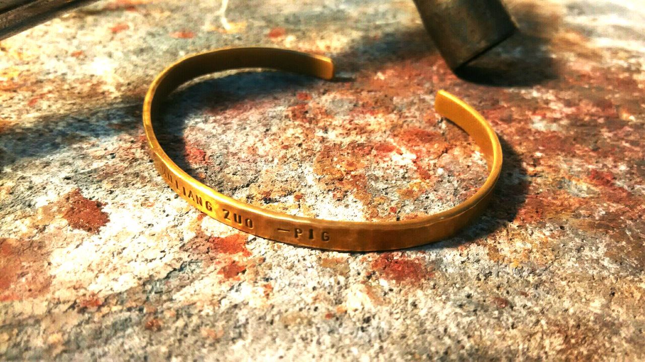 親手鍛敲黃銅手環一對,可打印英文字型