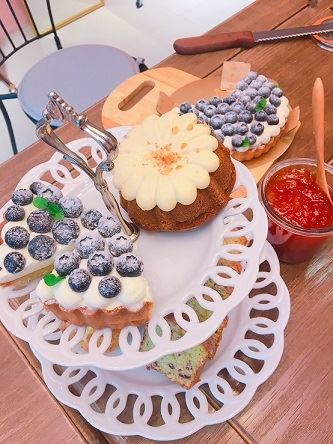 ((含手工果醬下午茶(兩種口味)、手工甜點每人一份(檸檬磅蛋糕、藍莓塔、香蕉蛋糕))