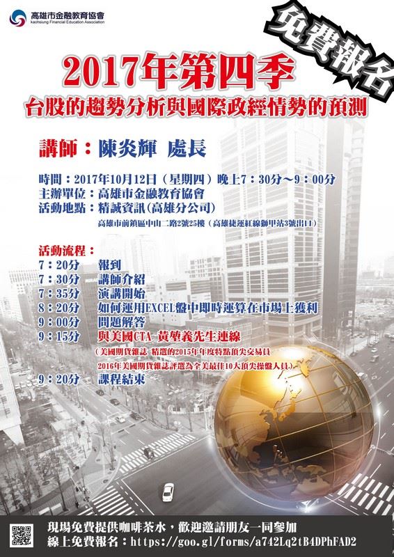 21:15 與美國CTA 黃堃義先生連線(2016年美國期貨雜誌評選為全美最佳10大頂尖操盤人員)