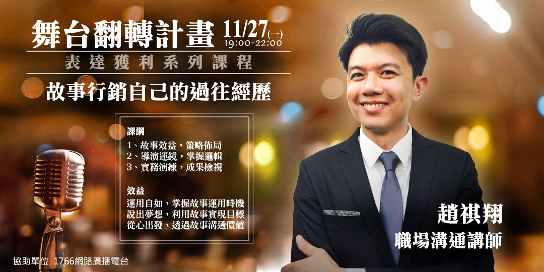 這次也加入舞台翻轉計畫, 希望能讓更多有志用溝通獲利的人們, 有更好的傳承學習,也期許大家都能幸福^^
