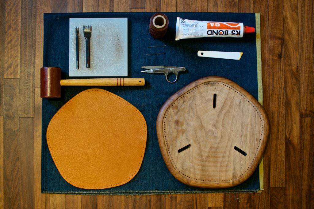 「Chaiwood柴屋」關注各種木料的運用可能、擅長木工與異材質的結合,設計風格兼具溫暖與俐落。木凳體驗課程從木料的結構分解、研磨、天然護木油塗裝到與皮革椅面縫製,皆由職人引領製作,由手感受各種工藝細節,完成後就帶著你的凳子回家,起居坐臥、陪你很久。