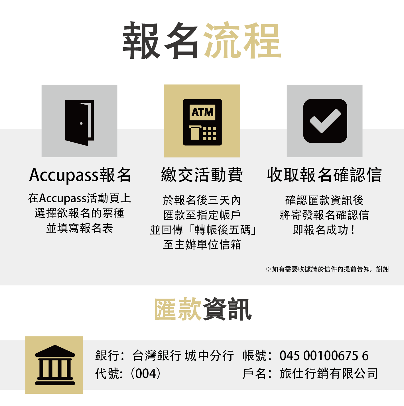 報名完成後出示 ACCUPASS App 中的票券即可快速入場。