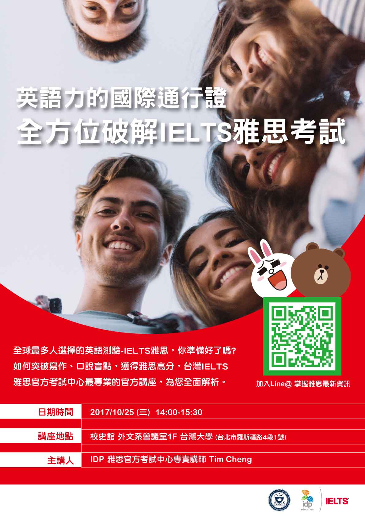 本學期僅此一場,座位有限~~~~~正在為雅思考試苦惱的你,千萬不可錯過喔!