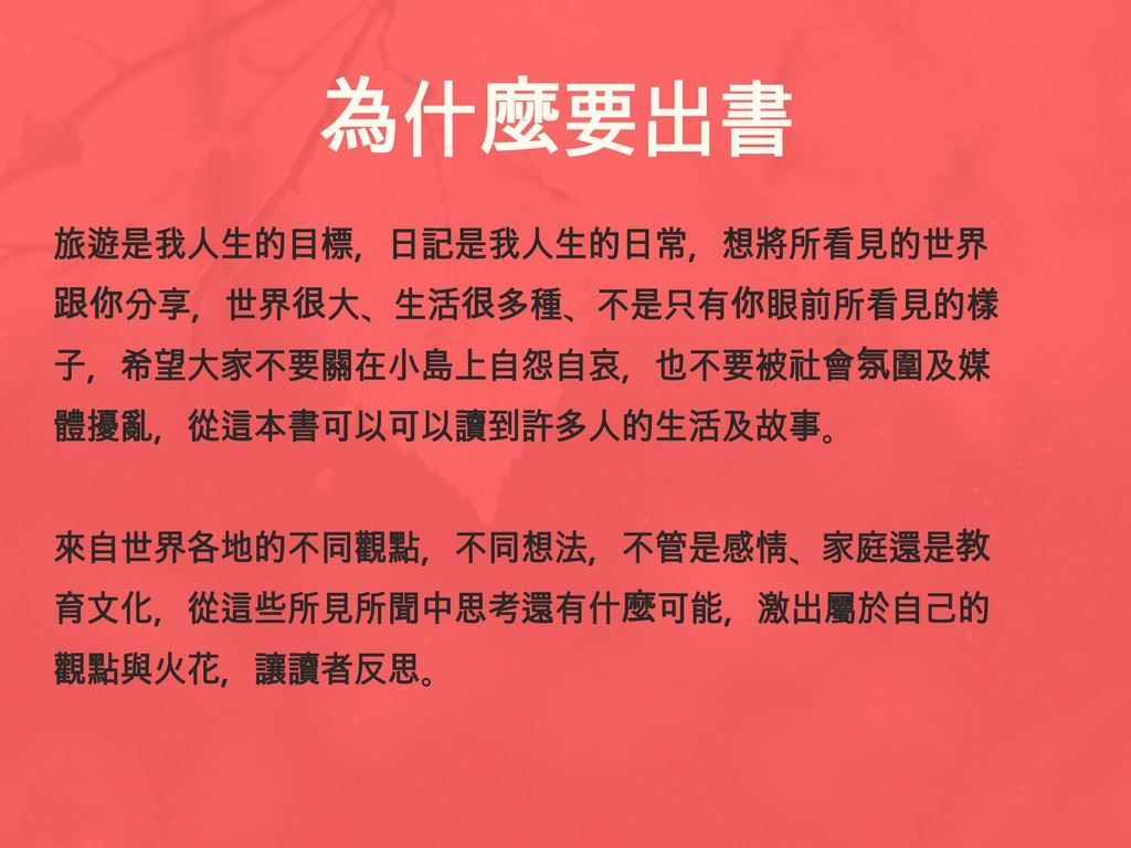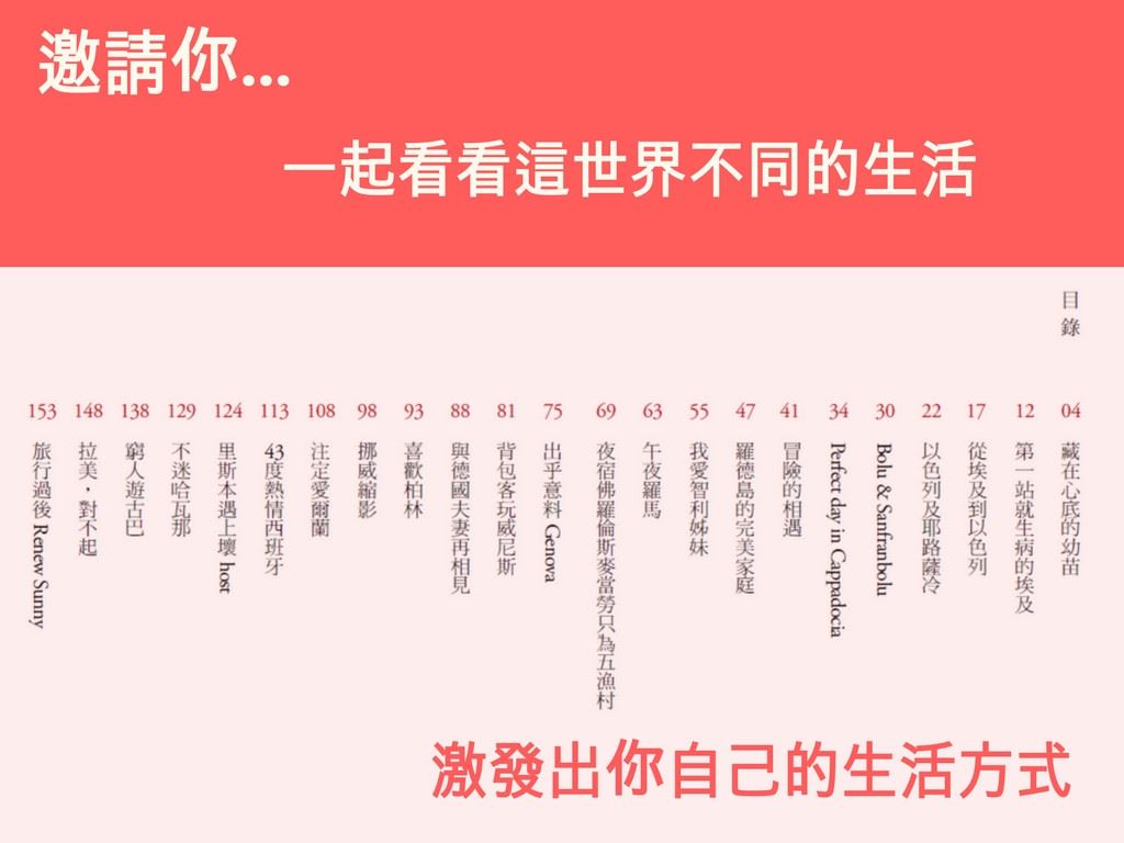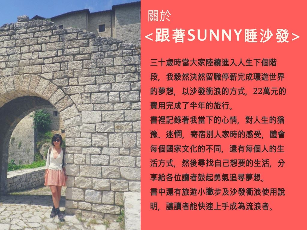 背包客旅行家Sunny將親臨現場分享他旅途上所遭遇到的趣聞與