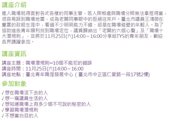 臺北青年職涯發展中心Taipei Youth salon