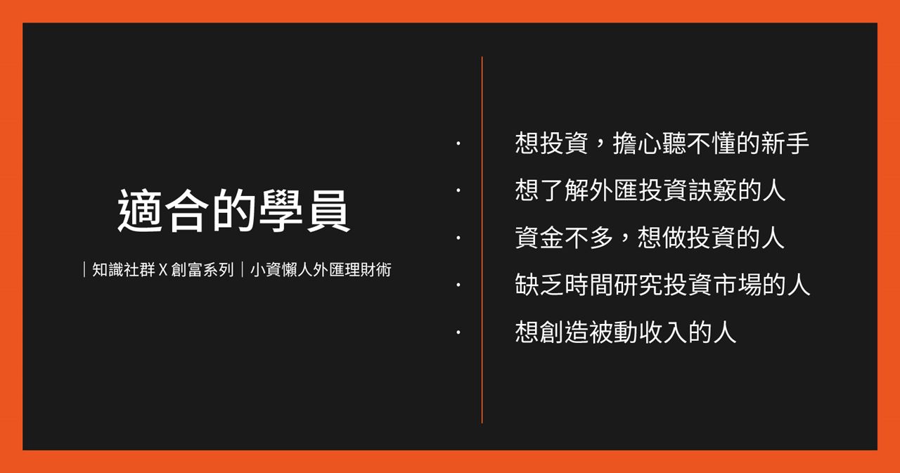 金錢深入我們生活的各個層面,不論是工作、存錢或消費,生活圍繞在持續不斷的金錢交易當中。然而,傳統教育一直以來缺乏指導生活上的金錢觀念,知識社群則以投資理財教育為核心,建立互助合作的學習環境、舉辦投資理財的相關講座。透過持續不斷的「分享知識」,建立成員對投資理財的理解,讓成員更順利地去追求理想的生活。