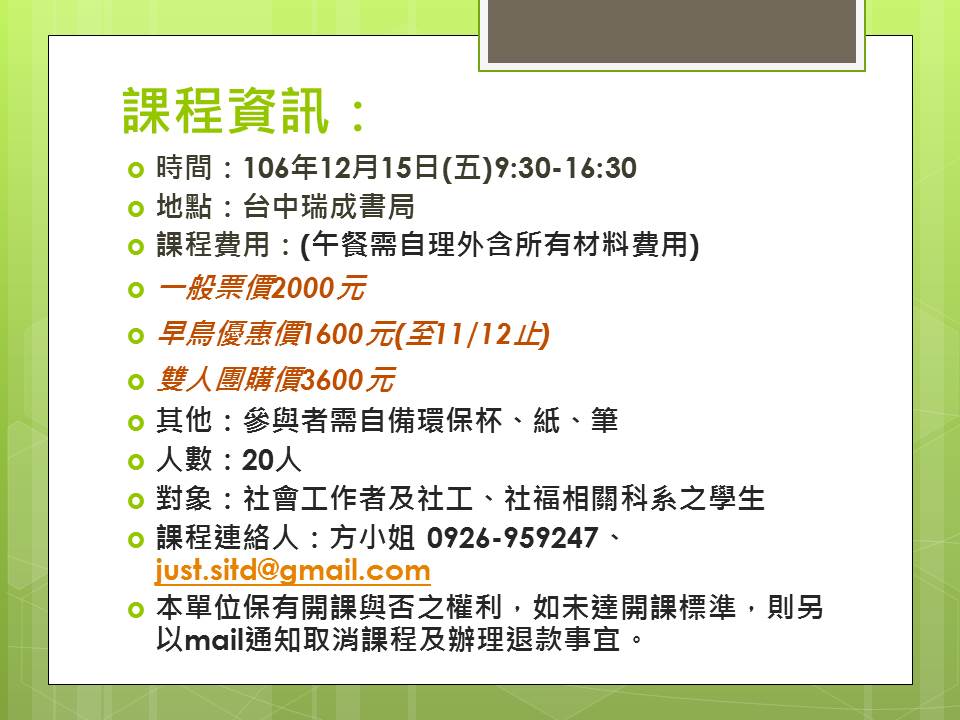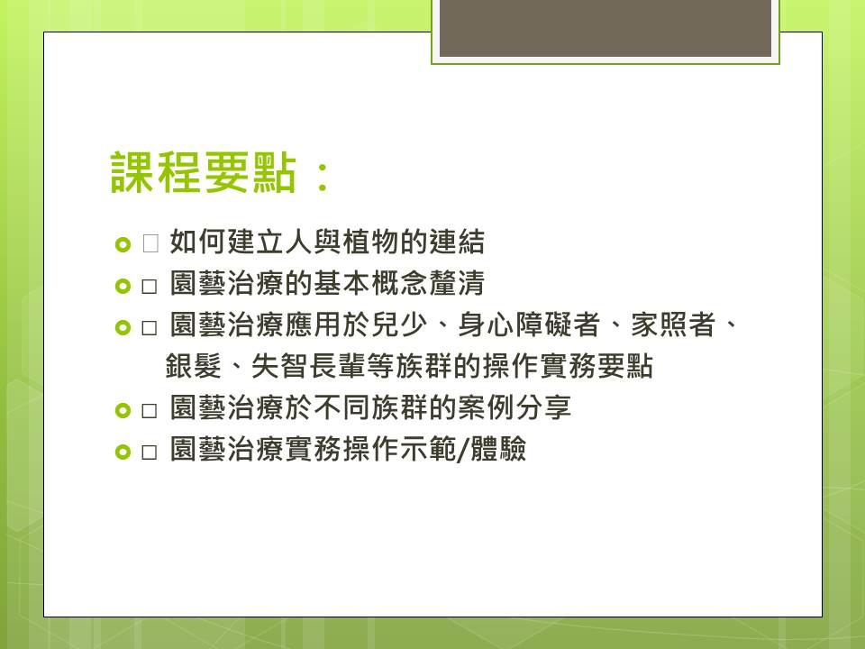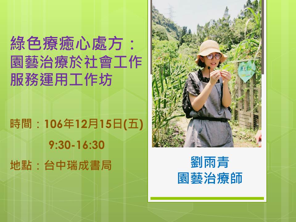 綠色療癒心處方:園藝治療於社會工作服務運用工作坊-台中
