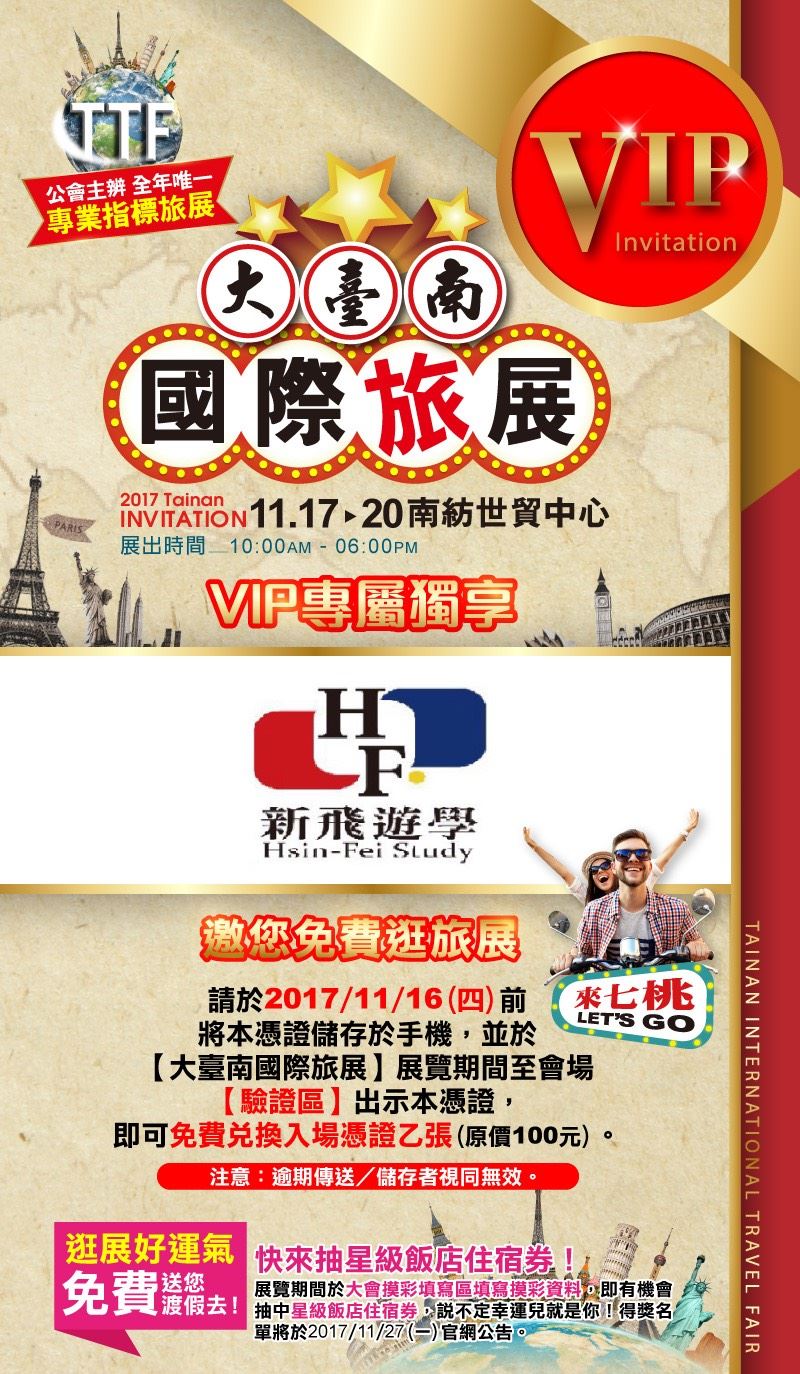 菲律賓遊學第一品牌 - 新飛國際將在11/17-11/20於台南南紡世貿展覽中心298攤位展出