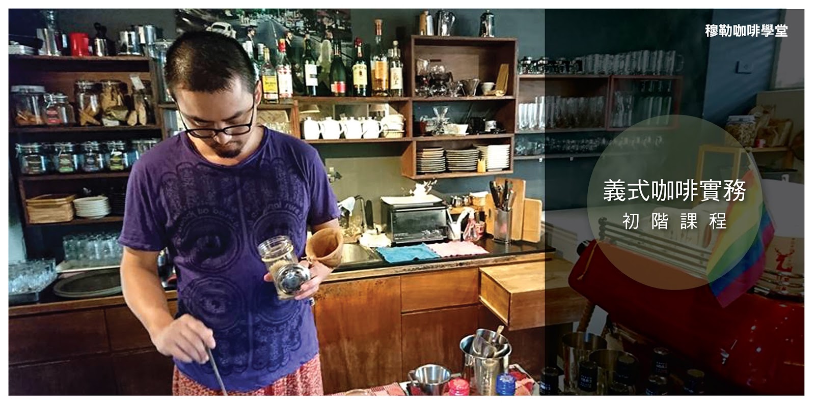 課程在穆勒咖啡館吧檯進行,讓學員在最專業的情境下,學會完整吧檯實務。