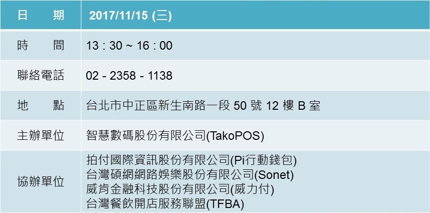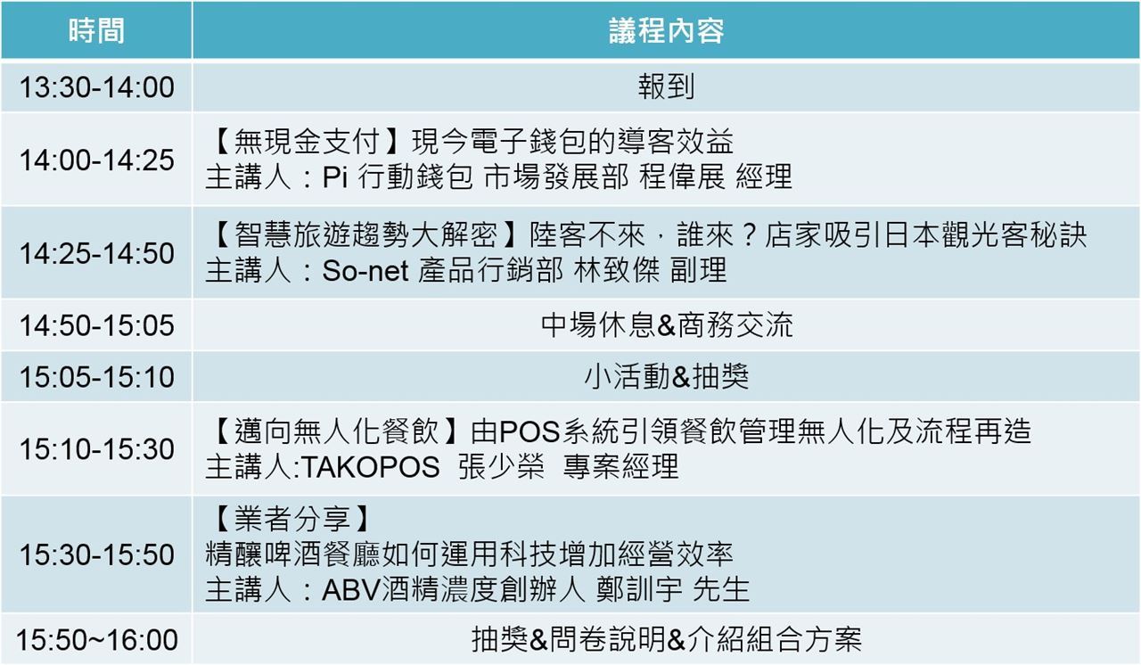 ★小提醒★活動開始前30分鐘,即可進場請店家們準時入席,避免錯過寶貴資