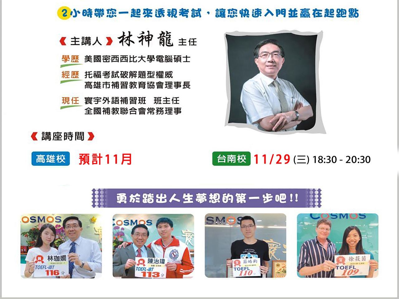 【 免費說明會 】 - 寰宇外語 托福必勝關鍵