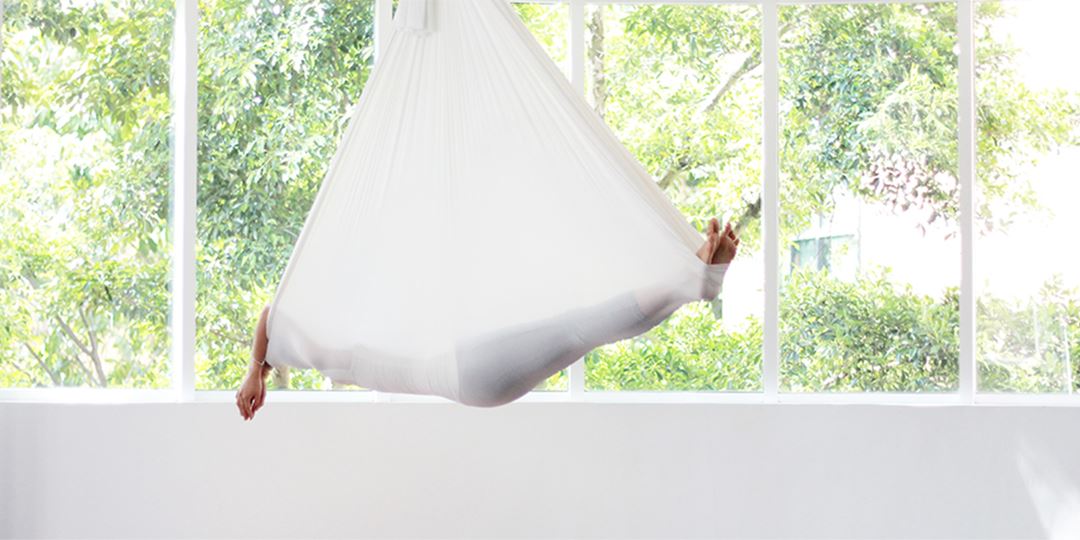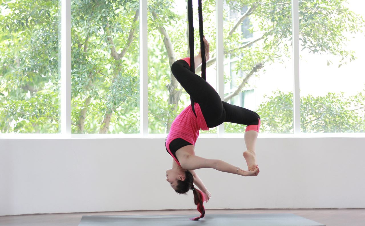 空中瑜珈是運用懸垂的絹布,藉助反地心引力與布掛支撐身體的力量,幫助我們在空中進行瑜珈練習,使平時部分難以完成的瑜珈動作變得較輕鬆,體會更深度的無壓力肌群伸展。空中瑜珈同時著重於平衡、核心、柔軟度、專注力,可幫助練習者提升全身性的協調感,有覺知的感受身體,體驗身心飛翔的輕盈舒展。