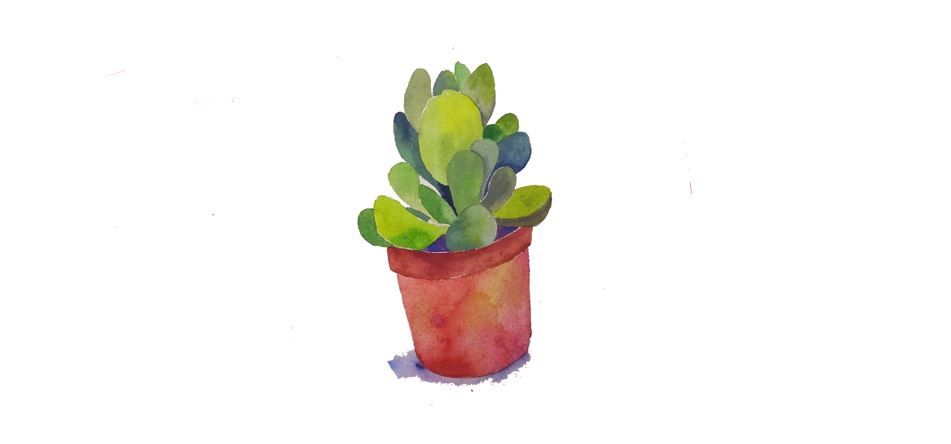 多肉植物小品-多肉植物飽含水份的特質很適合用水彩表現,透過紙上盆栽練習同色系的色彩變化與水份特性,是很適合水彩入門的課程。