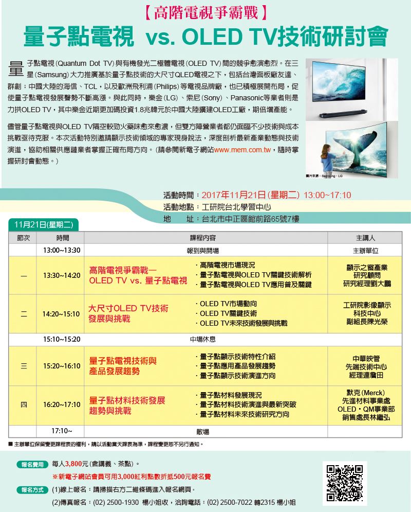 【高階電視爭霸戰】量子點電視 vs. OLED TV技術研討會