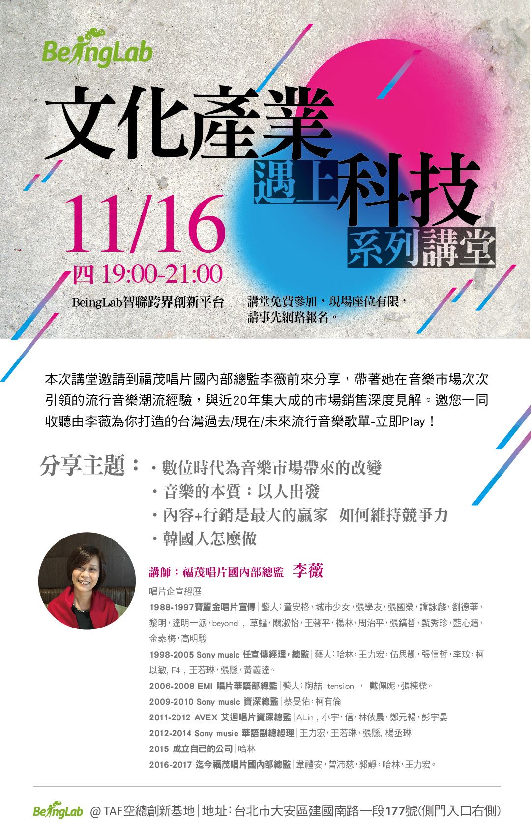 【文化產業遇上科技講堂 二】數位時代為音樂市場帶來的改變