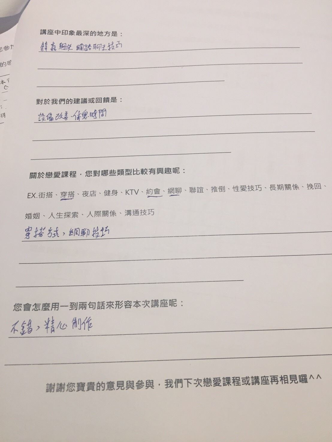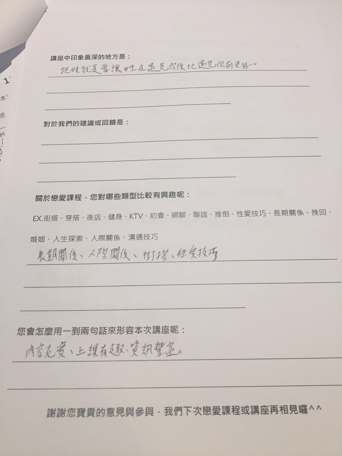 — 簡單來說,這場講座會讓你具備所有你該具備的武器,讓你輕鬆的駕馭你的情場。
