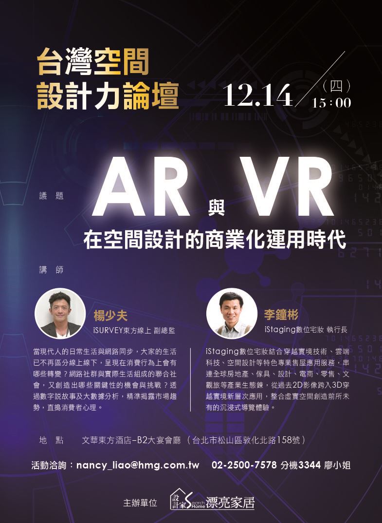 【15:00入場-僅論壇活動】2017台灣空間設計力論壇- AR與VR在空間設計的商業化運用時代