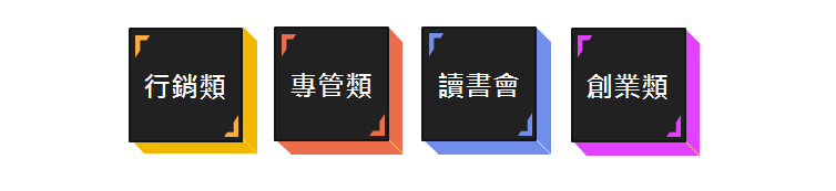 課程講座、私人課程、小班課程、小型活動、心理諮商、教育訓練、公司外訓等。