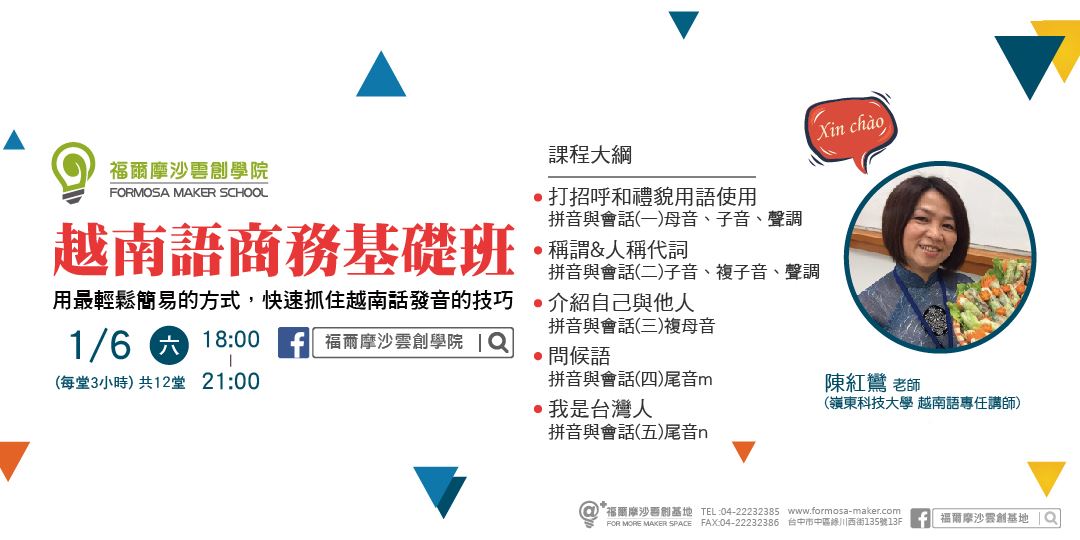 2018.1.6 (六)開課,每周六 18:00-21:00 (每堂3小時) 共12堂
