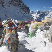 世界第一高峰聖母峰位於尼泊爾的坤布山區(Khumbu),在這裡,六千米以上的山峰數之不盡,高海拔的雪峰與藍天,其下的森林與河流……在這幅風景中,Gokyo靛藍色的湖水恍若雪山間的一顆明珠。
