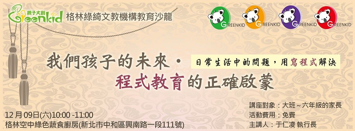 格林綠綺 教育沙龍-我們孩子的未來‧程式教育的正確啟蒙